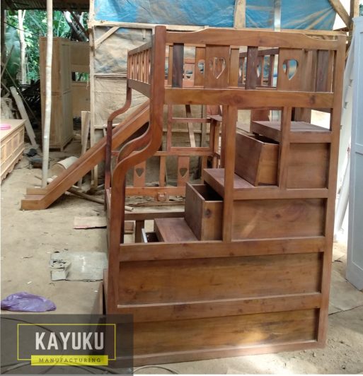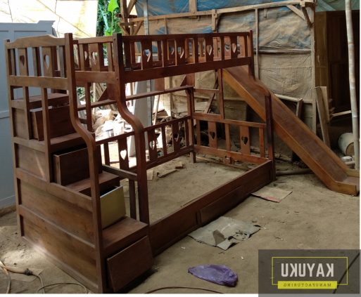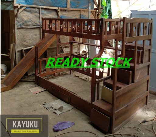 Spesifikasi 2 bed, 7 laci, rak buku, perosotan