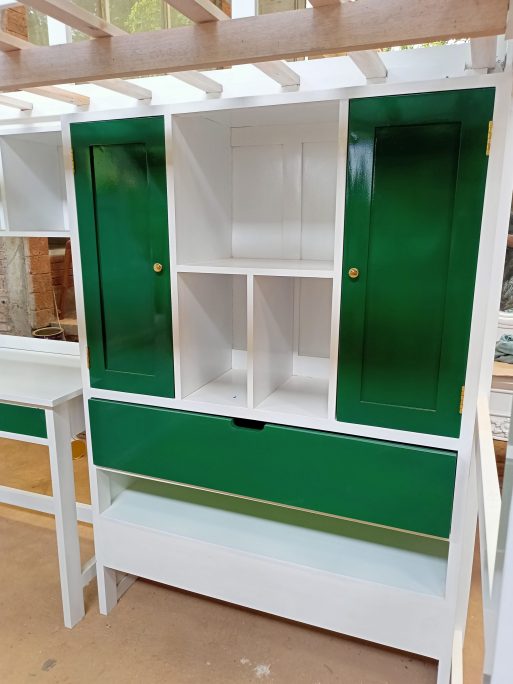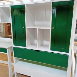 Spesifikasi 1 bed, 1 meja belajar, 1 lemari, tangga rak & laci
