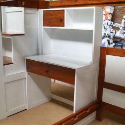 Spesifikasi 2 bed, 1 lemari, 1 laci, 1 meja belajar